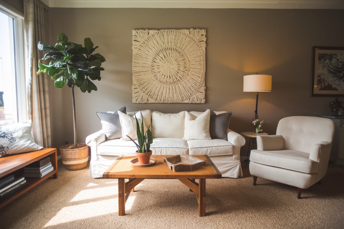 Les textiles jouent un rôle fondamental dans la décoration d’un intérieur. Optez pour des matériaux naturels et des textures variées pour apporter de la chaleur à votre espace. Par exemple, des coussins en lin ou en coton peuvent ajouter une touche de confort à votre canapé. N’hésitez pas à mélanger les motifs subtils, comme des rayures et des pois, tant qu’ils s’inscrivent dans votre palette de couleurs. Les tapis peuvent également délimiter des espaces dans une pièce et apporter une note de douceur.
